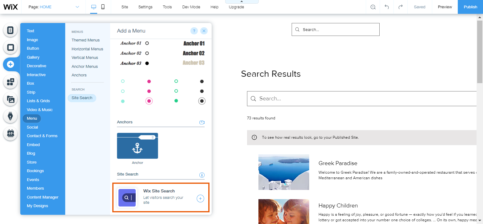 Wix Editor: Their drag and drop website designer which is quite easy to use and lets you work freely while implementing your idea.