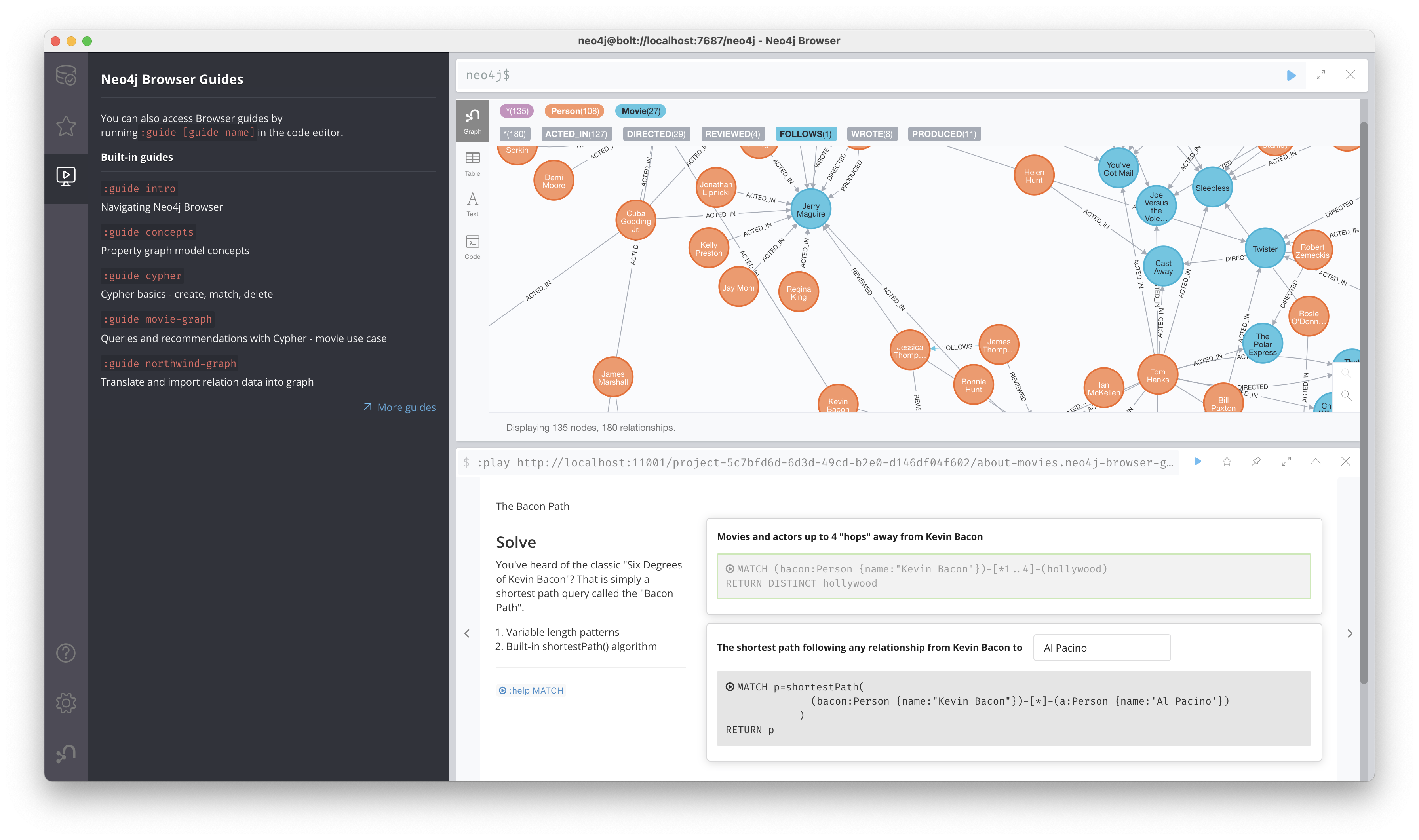 …. I mean look at this: an interactive tutorial that’s integrated, rather smoothly I might add, into the Neo4J browser. You just keep clicking through the steps and seeing those auto-organising graphs bounce into existence just get’s you hooked.