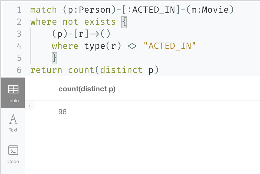 The workshop itself was a success. After an intro to graph databases and a few practical examples we held a quiz where each of my colleagues had to come up with an appropriate Cypher query to answer a question concerning the MovieDB (also packaged with Neo4J).